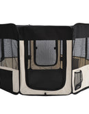 Stylish portable lightweight and well-built our soft pet playpen offers pets both the comfort and security they need and the freedom they deserve. It can keep a puppy away from potentially dangerous household items like poisons electrical wires etc. The playpen can be used around the house to confine pets to a specific area but is also great for play exercise and house training. Our soft pet playpen is constructed with a strong internal steel frame and durable 600D oxford cloth. Uniquely crafted to meet your home and travel needs because it sets up in seconds yet folds easily and stores in a carrying case.