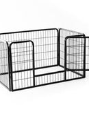 This pet playpen are perfect for a variety of pets. It can be easily set up for indoor and outdoor use. 4 durable panels could be folded up for easy storage. Sturdy metal wire with anti-rust coating ensures long time use. It will be a secure protection area for your pets' living and romping around outdoors without your worries.
